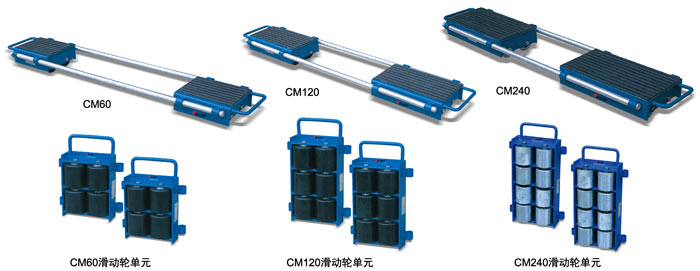 ● 每個CM系列滑動輪由兩個滑動輪單元及聯接桿組成 ● 載重能力大,適用于重型貨物的移動 ● 兩個滑動輪單元之間的間距可調節